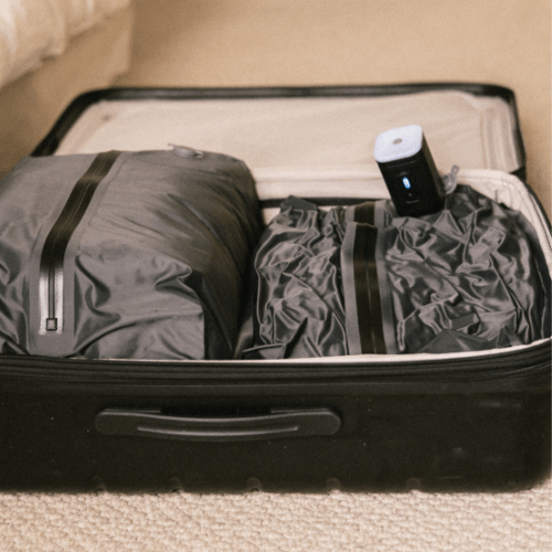 The ShrinkPod Pump is available as a powerful add-on to your order. While the bags can be compressed by hand, we highly recommend the Air Pump for travellers who want to maximise every millimetre of suitcase space without hunting for a vacuum cleaner while abroad.